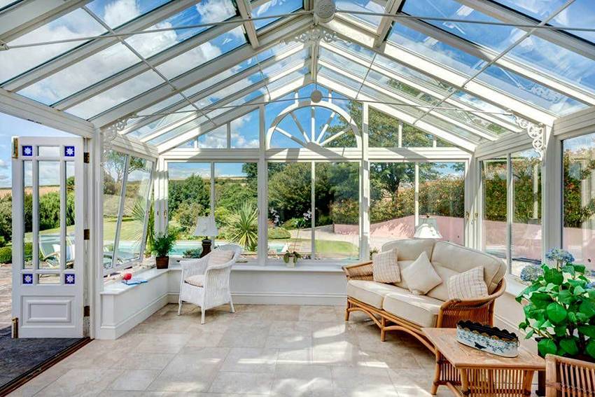 - проникновение солнечного света — большая стеклянная площадь пропускает максимальное количество солнечного света, а раздвижные рамы — солнечного тепла;