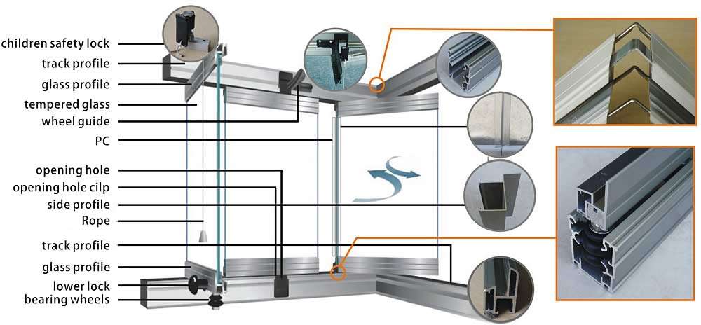 Раздвижными можно делать не только окна, но и двери и даже целиком всю настенную панель, алюминий для этой цели отлично подходит. Размеры всех деталей тщательно просчитываются, поэтому лучше пригласить мастера замерщика. Заказывать рекомендуется роликовые варианты (на манер дверей шкафа-купе).