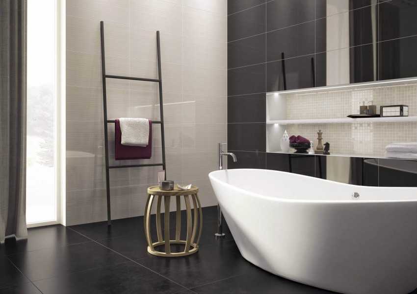 - в случае соединения светлых и темных тонов, первые советуют использовать для стен, а вторые — для пола. Плитка будет очень эффектно смотреться, если будет иметь место естественное освещение;