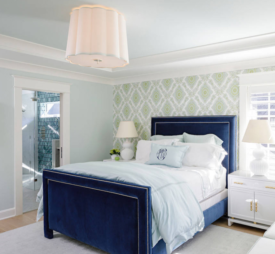 Оттенки зелено-голубых обоев выглядят умопомрачительно. Идеально подойдут для спален, гостиной и ванной комнаты.