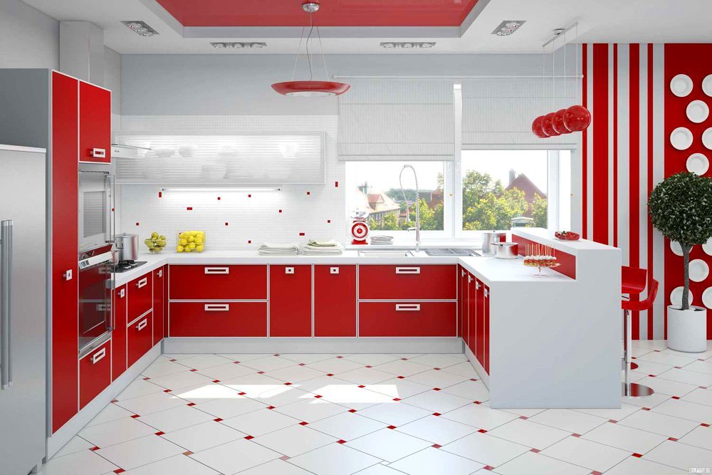 Для помещений небольшого размера красный стоит использовать акцентуально – оформить столешницу, фартук, несколько шкафов. Для больших кухонь актуальны и красные фасады, но их желательно оттенить полками, стеклянными вставками и контрастным фартуком.