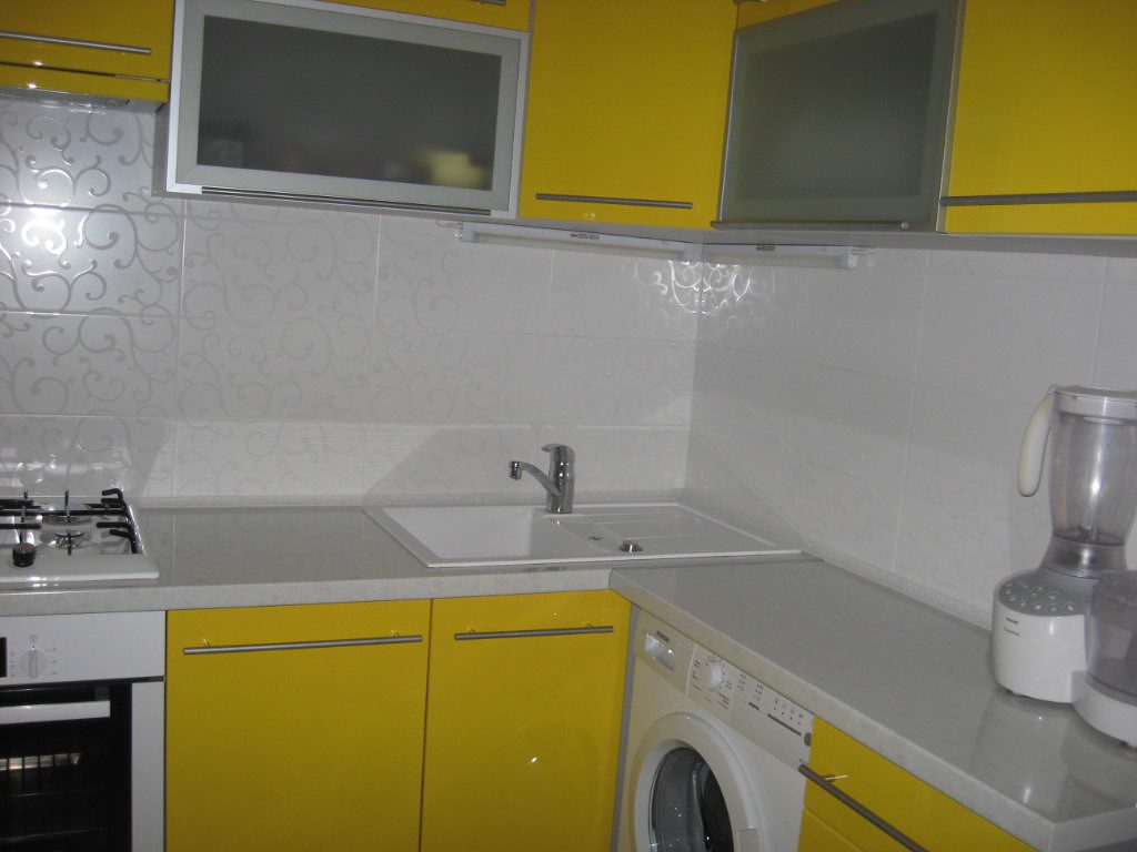 Наконец, желтый просто красив, особенно в обрамлении белой сверкающей плитки. Желтые кухонные фасады наполнят столовую жизнью, уютом, потому что будут ассоциироваться с домашним очагом.