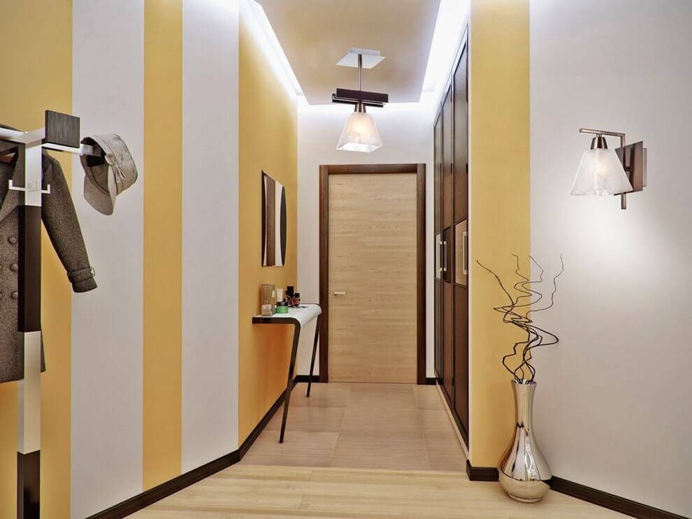 В прихожей тон мимозы или лютика – очень удачная мысль, особенно если речь о коридоре. Во-первых, искристый желтый зрительно его расширит, во-вторых, добавит освещения. Но не только.