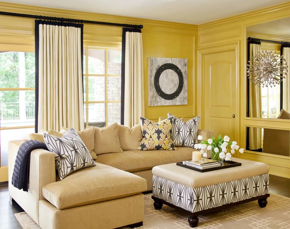 Желтый цвет будет отлично дополнять интерьер гостиной комнаты