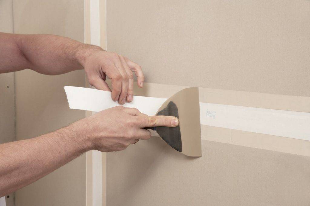 Все стыки между листами должны быть проклеены сеткой-серпянкой, после чего покрыты стартовой шпаклёвкой с полимерными добавками, чтобы исключает образование трещин при их подвижке.
