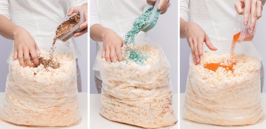 - Размешивать массу можно даже руками. Природные материалы в составе не вредят коже человека.