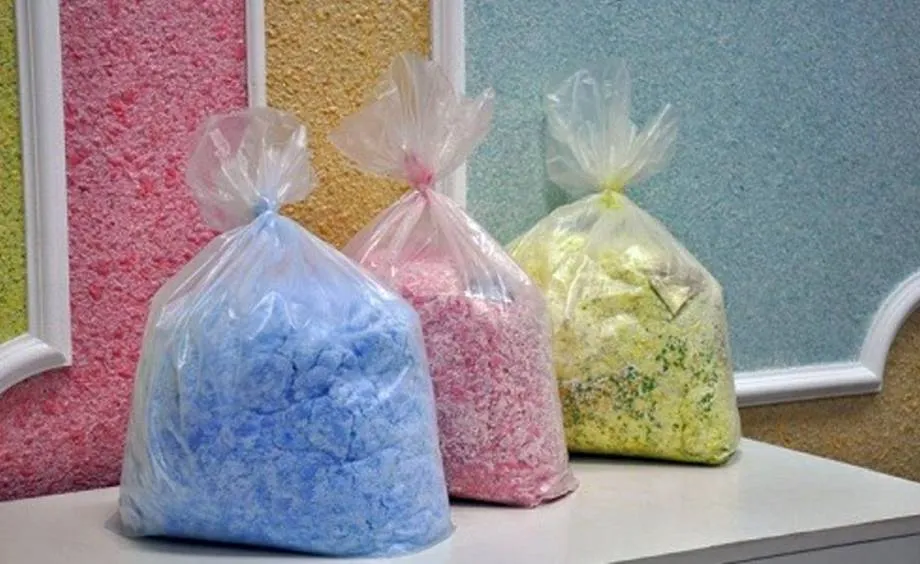 Жидкие обои — это финишное декоративное покрытие, которое имеет шероховатую структуру и может быть любой расцветки. Продаётся в сухом виде, а для приготовления рабочего раствора достаточно добавить воды в смесь.