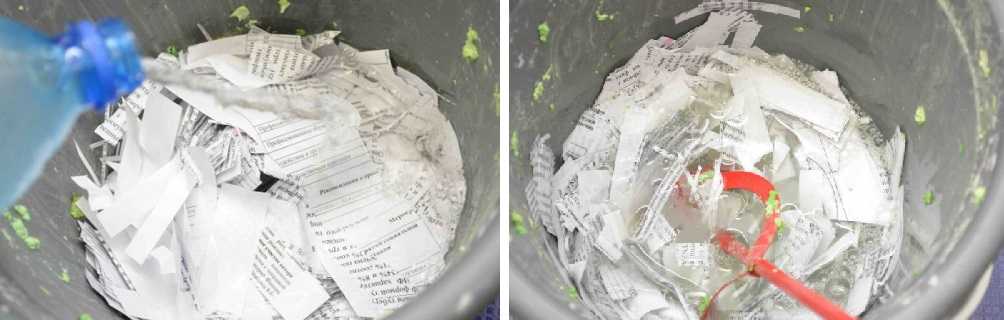 - через 5 часов, когда листы размокнут, масса взбивается строительным миксером (вставляете в перфоратор и — вперёд);