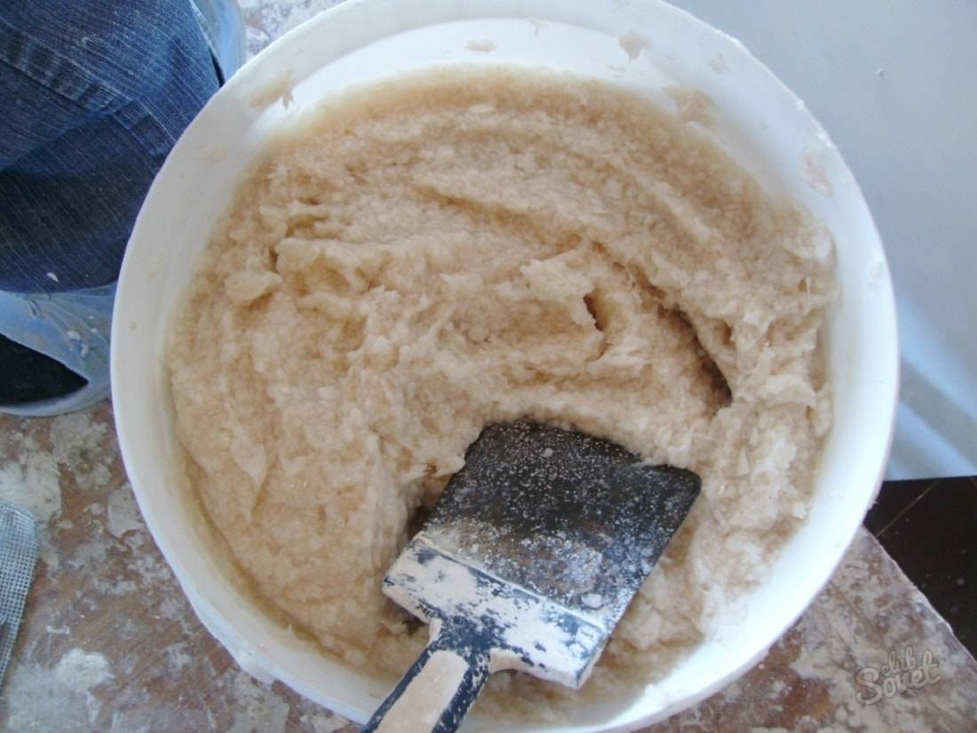 - Размокшую бумажную массу следует с помощью электродрели с венчиком перебить в кашеобразную массу, добавить к ней антигрибковое средство.