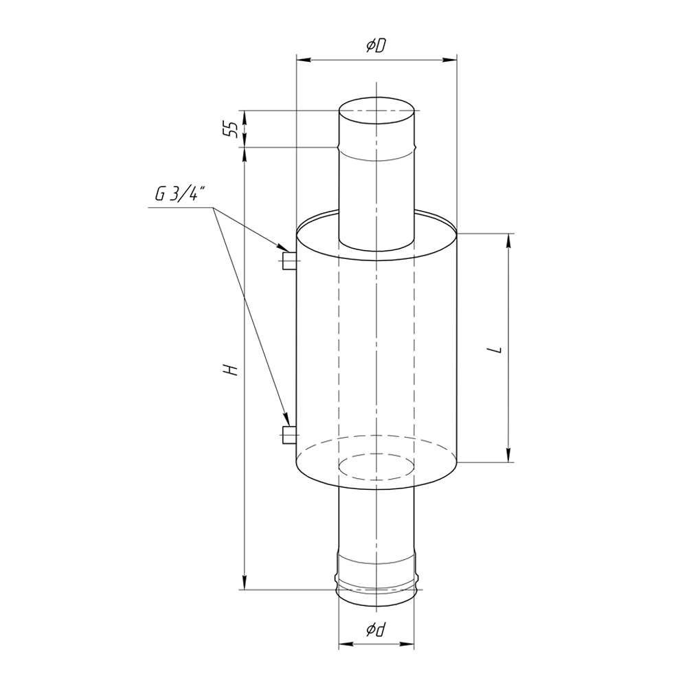 - Емкость теплообменника устанавливается непосредственно на трубу дымохода, которая должна быть прочно закреплена на каменке.