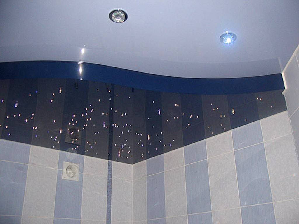 - светодиодная подсветка – на месте предполагаемых «звезд» на натяжном полотне закрепляют точечные светильники разного размера и мощности, так получают звездное свечение, работа эта весьма трудоемка и ограничивает число сияющих «звезд»;