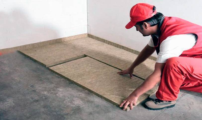- Поверх грунта монтируется звукоизоляционный материал выбранной категории.