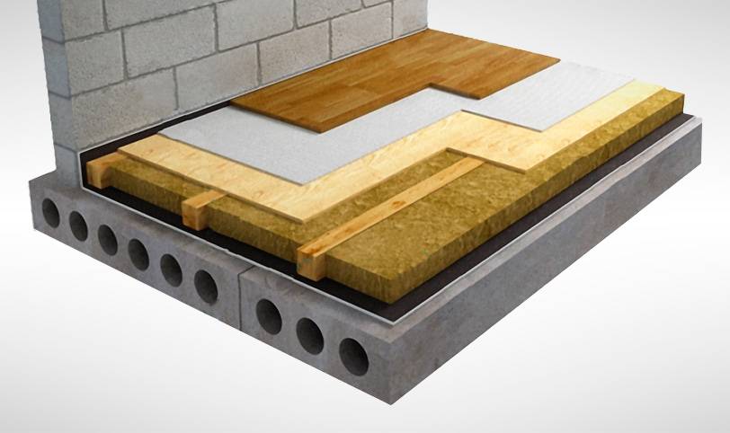Есть три варианта звукоизоляции: для деревянного пола, бетонного и шумоизоляция без стяжки.