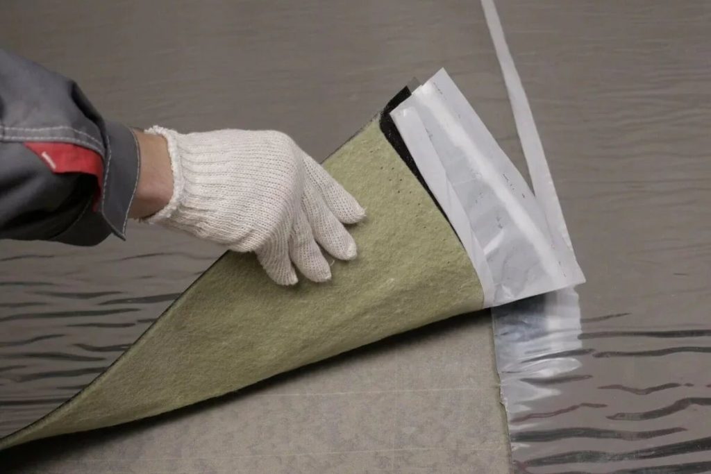 - В случае, если геотекстиль не заводится на стены, через строительные конструкции смежных помещений может передаваться структурный шум. Многие потребители принимают решение по устройству дополнительной демпферной ленты из вспененного пенофола, которая имеет адгезионное покрытие и проклеивается по всему периметру комнаты.
